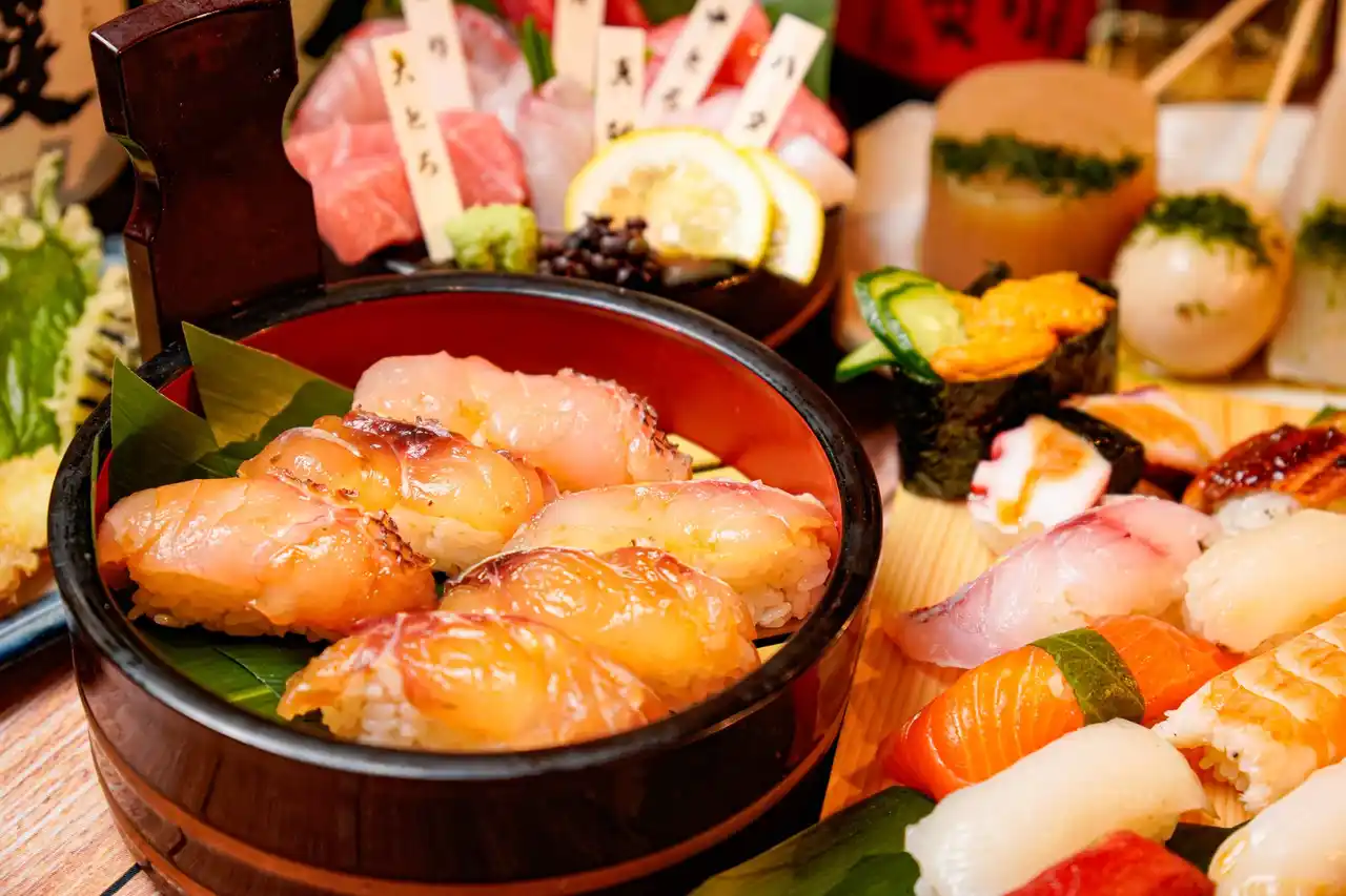 | 当店では、静岡県沼津・下田・浜松の市場で仕入れた魚介や、自社船による水揚げ、グループ企業の豊洲拠点を活かした仕入れ体制を整えています。握り寿司や巻き寿司、海鮮丼といった定番メニューに加え、静岡おでんや伊豆名物の「シマ寿司」、さらに新感覚の手巻き寿司「ご褒美巻き」など、静岡の魅力を詰め込んだ多彩な料理をご用意しています。 | |||||||||||||||||||