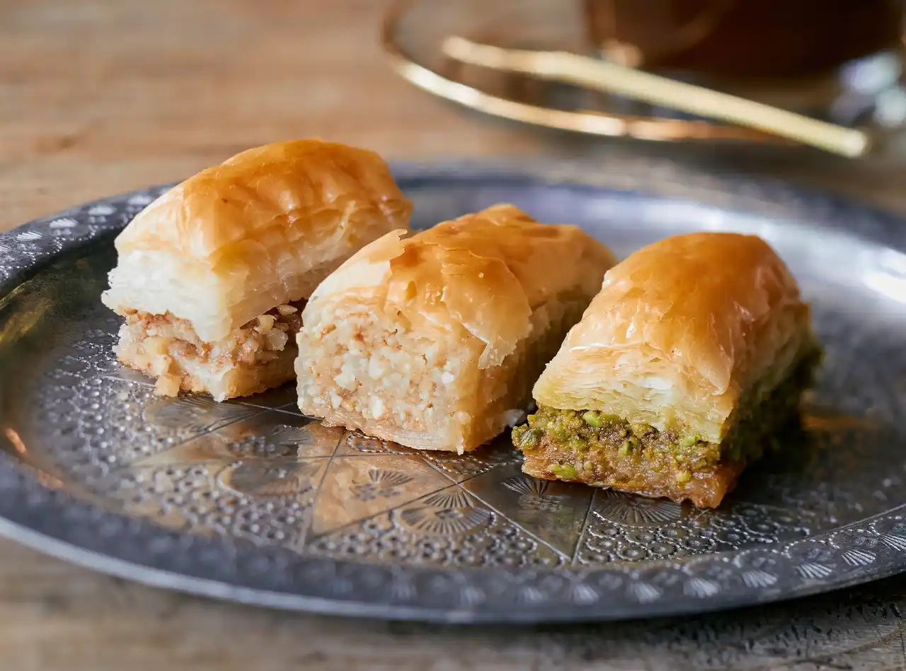 オスマン帝国時代から愛され続けるトルコの伝統菓子“バクラヴァ”。手作業で幾層にも重ねた薄いパイ生地にナッツをたっぷりと挟んで焼き上げ、 |
