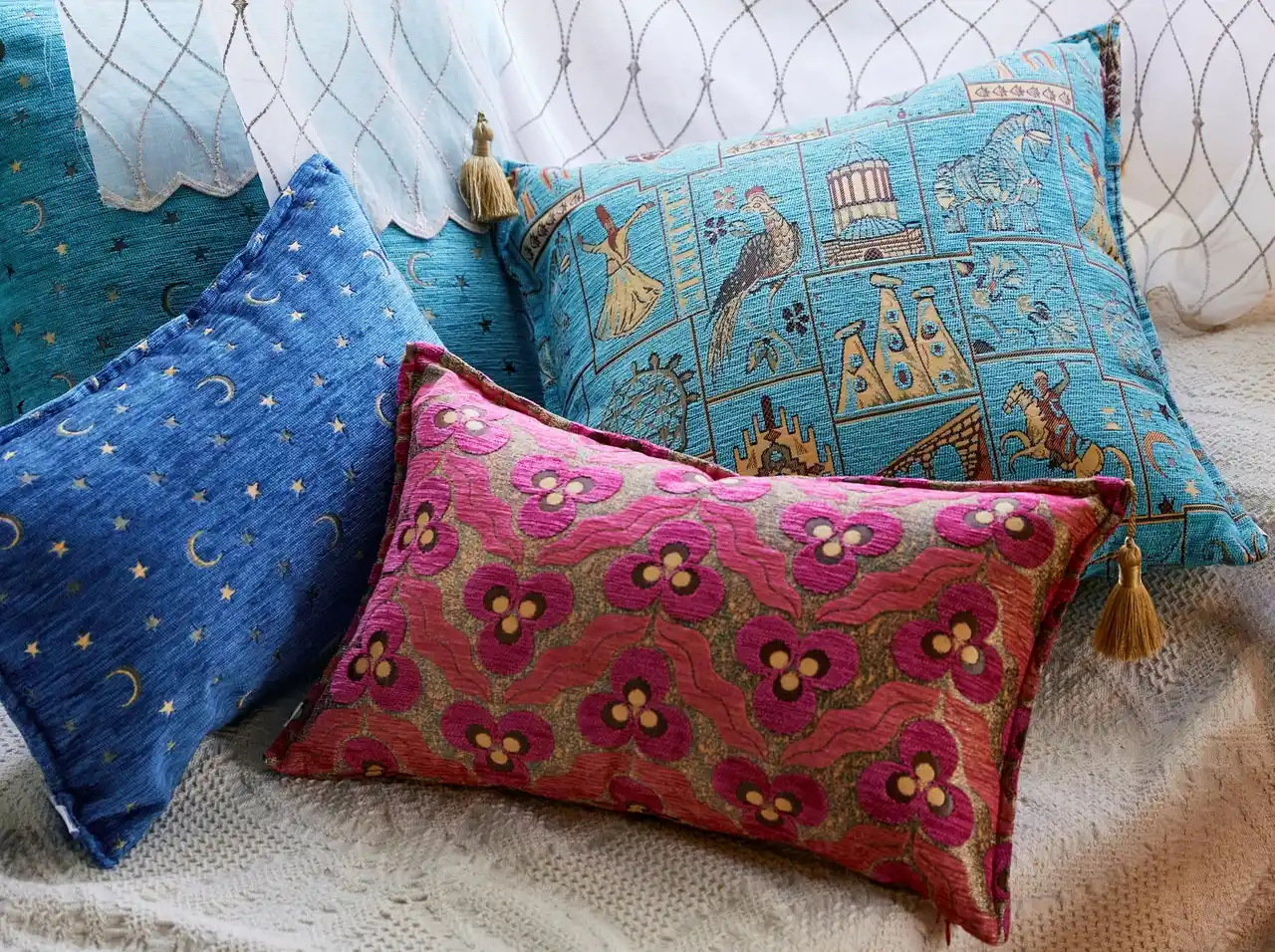 遊牧民による伝統が息づく絨毯や、トルコのエッセンスを感じるクッション、宮殿やモスクを彩ったモザイクランプの幻想的な輝きで、ゆったりやすらぐお家時間をお楽しみいただけます。 |