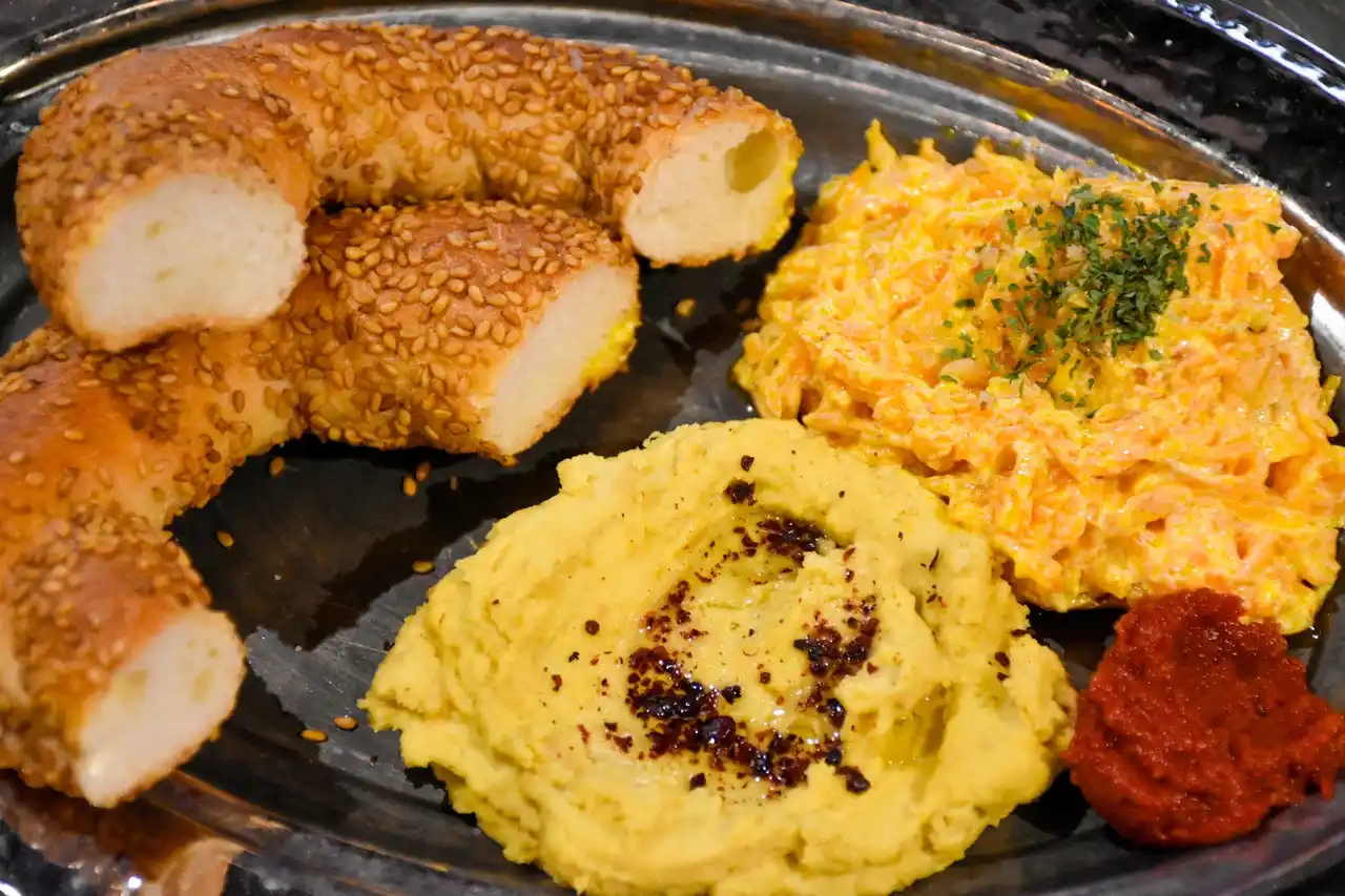 メゼセット(定番パン&人参ヨ ーグルト・フムス付き、1人前) 1,001円 |