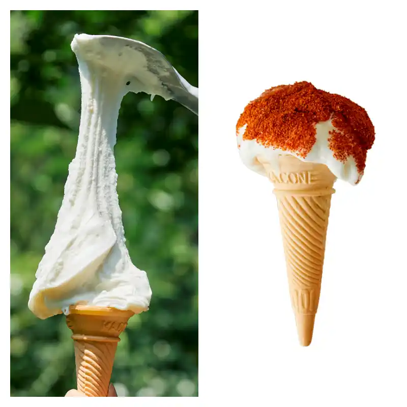 独特な粘り気と伸びる性質を持つトルコアイスが登場。160年前から代々伝わるギュネイ家のトルコアイスに、お好きな組み合わせでトッピングをお楽しみいただけます。甘さと辛さが絶妙にマッチした、ミルク×唐辛子の組み合わせに注目。 |