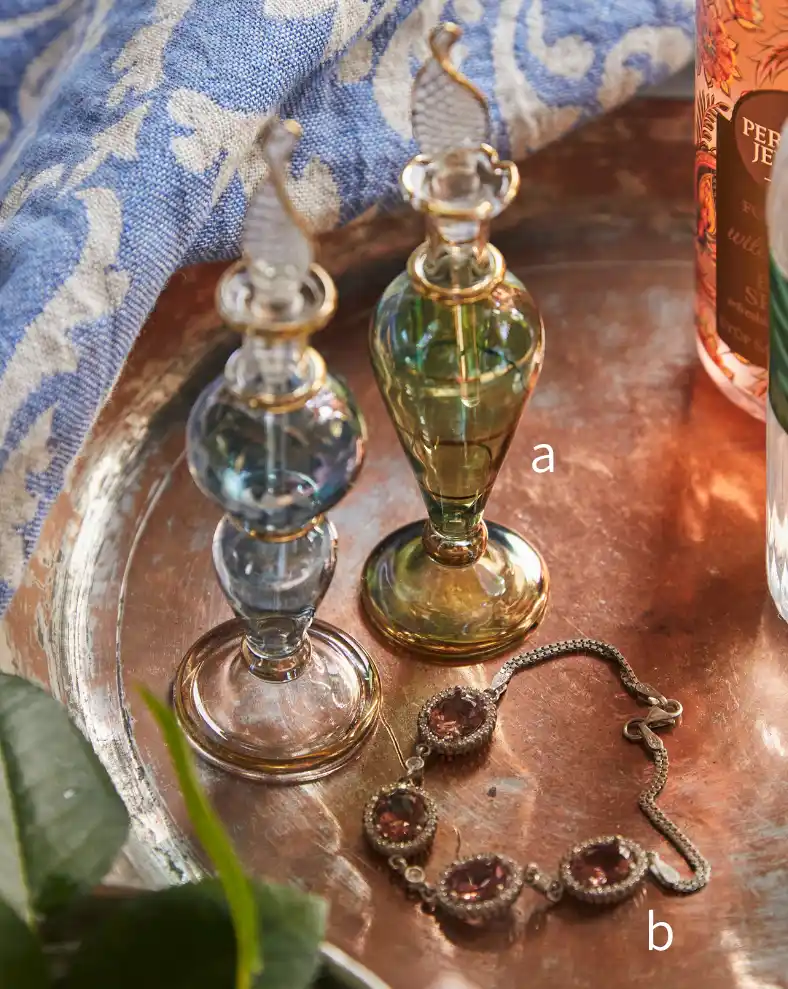「ワールドバザール」a.香水瓶 各2,200円、b.ブレスレット 7,300円から |