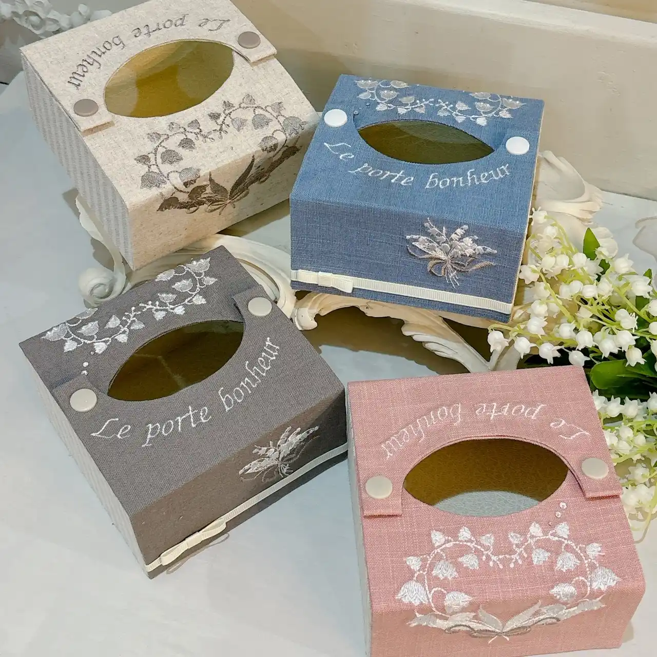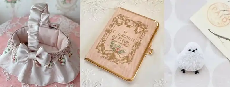 刺繍生地で仕立てる愛らしくフェミニンなカルトナージュブランド。完成品のほか、キットや素材もご紹介。 |