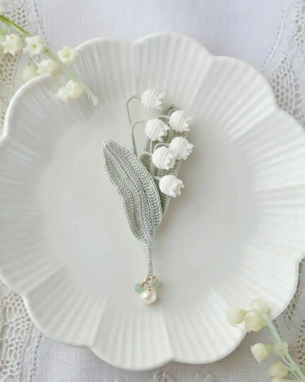 <shinekirari(シャインキラリ)>すずらん刺繍クラシックブローチ 6,600円 |