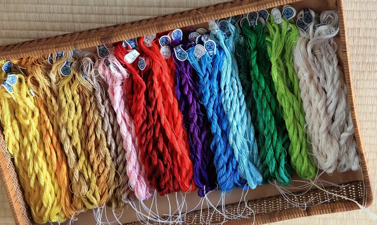 京都市下京区・松原通に店を構える明治4年創業の糸屋。豊富な色展開の絹糸や綿糸は、手芸愛好家からも厚い支持を集めています。 |