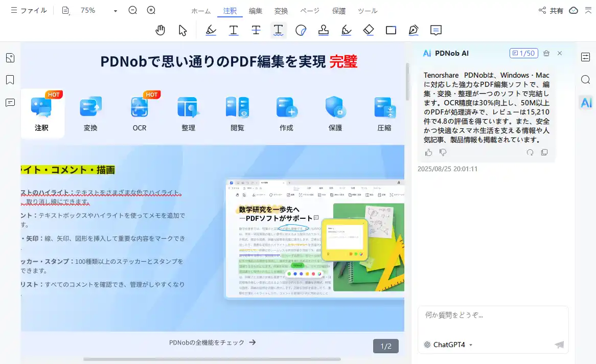 | 「Tenorshare PDNob」は、PDF編集における「ちょうどいい」を見事に体現したソフトウェアです。 | |||