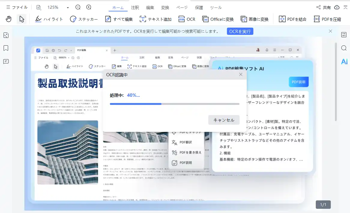 | ●OCR機能(画像やスキャンPDFの文字認識) | |||