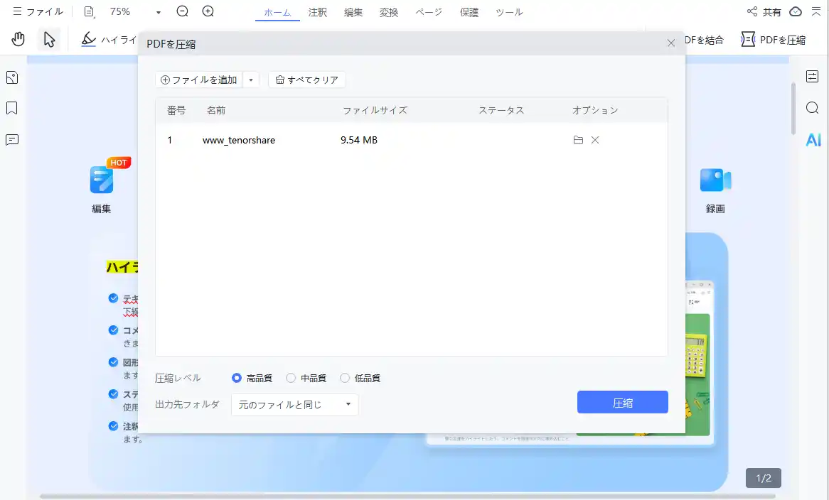 | 画質を維持したままファイルサイズを圧縮し、メールでの送付やクラウドでの共有を容易にします。 | |||