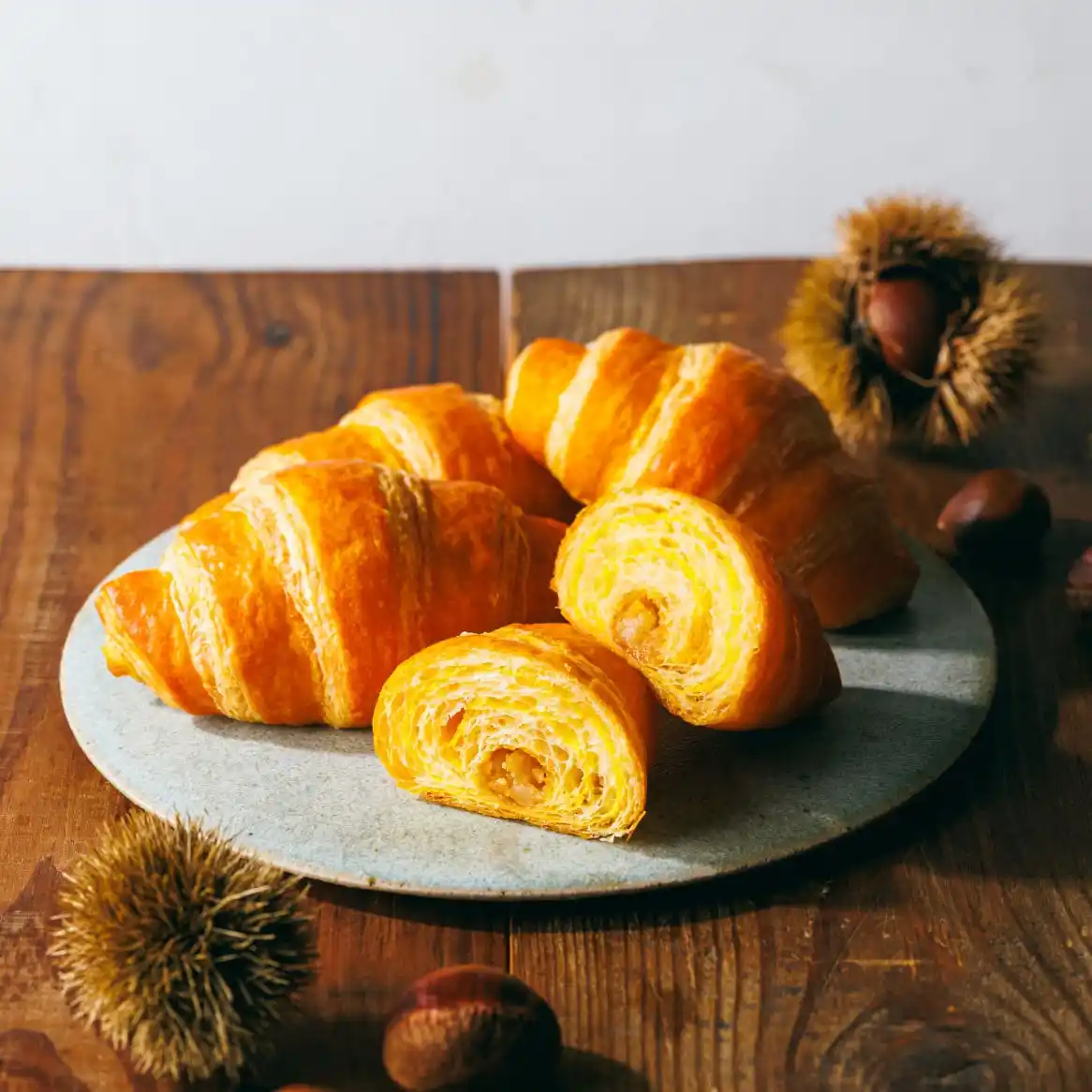 | 栗の甘露煮にバター・生クリームを加えたクリーミーなマロンあんを発酵バター入りのクロワッサン生地で包み焼き上げました。 | |||