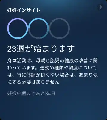 ・妊娠週数トラッキング:新しいトリメスターリングと週ごとのインサイトを表示する刷新されたホームカード |
