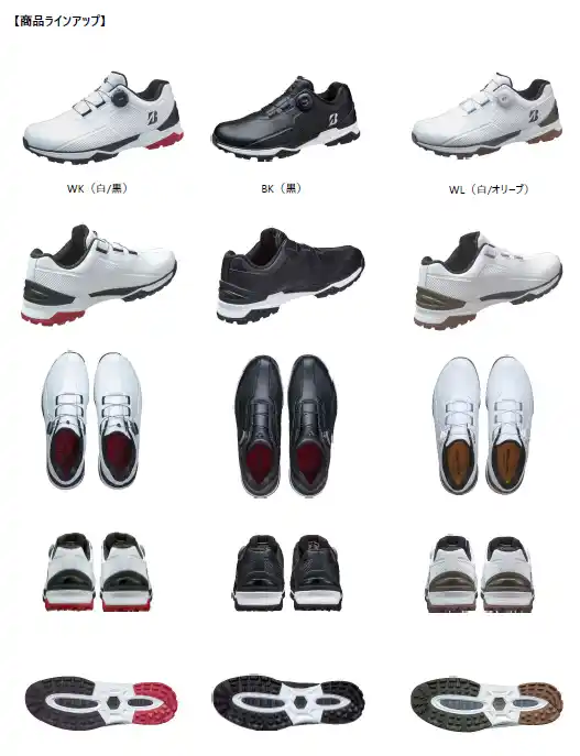 デザインは、幅広でもすっきりと見えるスポーティなアッパーデザインで、WK(白/黒)、BK(黒)に加え落ち着きのあるアースカラーのWL(白/オリーブ)を加えた3色展開のラインアップです。 |