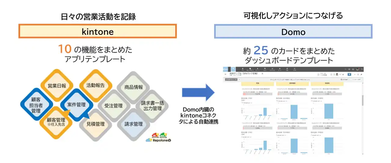 は、さまざまな業務に活用でき、現場主導で継続的な業務改善を実現するノーコードツールです。全国の中堅・中小企業において現場業務の効率化を推進しています。ソリューションパッケージプランは、kintoneの営業日報・顧客管理・受注管理などのデータをシームレスにDomoへ連携し、経営層から現場まで「同じ画面で同じ数字を見ながら議論できる」環境を実現します。これにより、情報整理の業務負荷を軽減するとともに、経営判断のスピードと精度を飛躍的に高めることを期待しています。今後もパートナーの皆さまと連携し、お客様のDX推進を全力で支援してまいります。 |
