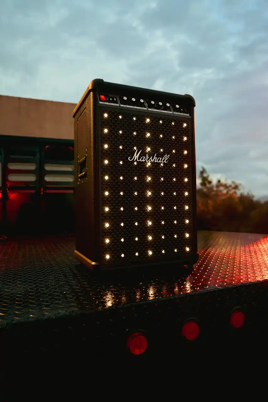 デザインは、使いやすさにも配慮した高級感のあるMarshallらしい外観となっています。金属の質感を活かした操作パネルや水性ポリウレタンレザーの外装、プレス加工された金属製グリルなどで構成されており、人際目立ちます。加えてステージ照明が内蔵され、マイクと楽器の入力に対応したコンボジャックも2基搭載されているため、あらゆるジャンルのパーティーに対応できます。バッテリーは交換することもでき、モバイルバッテリーとしても使用できます。またハンドルと車輪も内蔵されているため、移動時も問題なく持ち運べます。 |