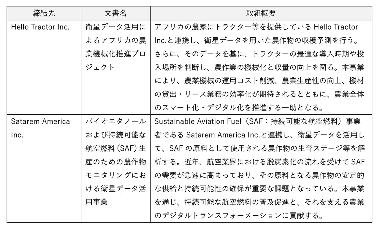 スペースシフトが締結した覚書は以下の通りです。今回のTICAD9を契機とし、アフリカ諸国における課題解決を目指し、今後ますます衛星データビジネスを拡大して参ります。 |