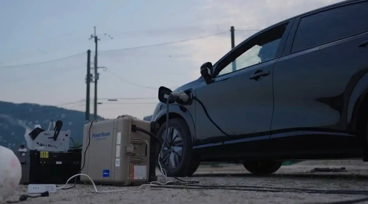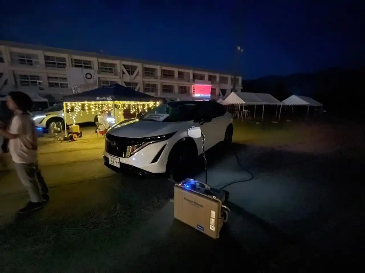 さらに、「ちょうちんが綺麗に映えるのは、電灯が少ない西浅井だからこそ。『暗い』の捉え方も、見方を変えれば強みにできる」。 この思いに感銘を受けた日産自動車と滋賀日産各社が、協賛を申し出てEV車を全台提供。 |