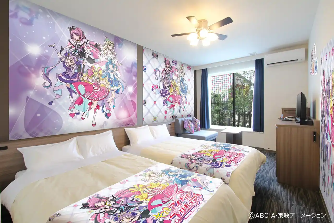 さらに、テーマパーク「ラグナシア」に隣接する「変なホテル ラグーナテンボス」では、ベッドスローや壁紙、クッションなどが『キミとアイドルプリキュア♪』仕様になった期間限定のコラボレーションルーム「キミとアイドルプリキュア♪コラボルーム」を販売中です。イベント期間は、宿泊特典としてノベルティやイベント利用券、ラグナシア入園券、朝食などが付いたお得なプランを販売します。 |