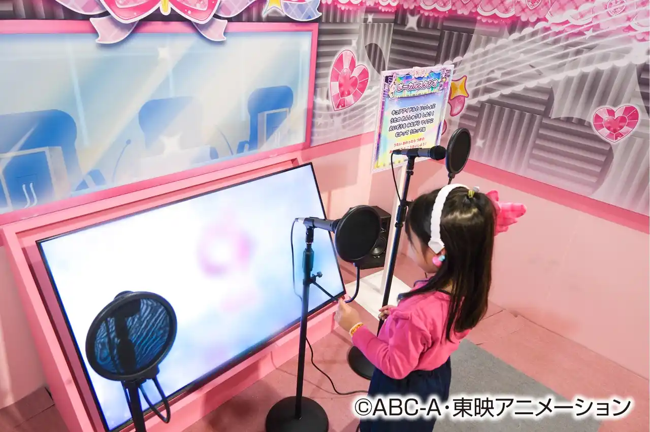 キュアアイドルと一緒に歌の練習をしよう! 映像を見ながらマイクに向かって歌ってね。 |