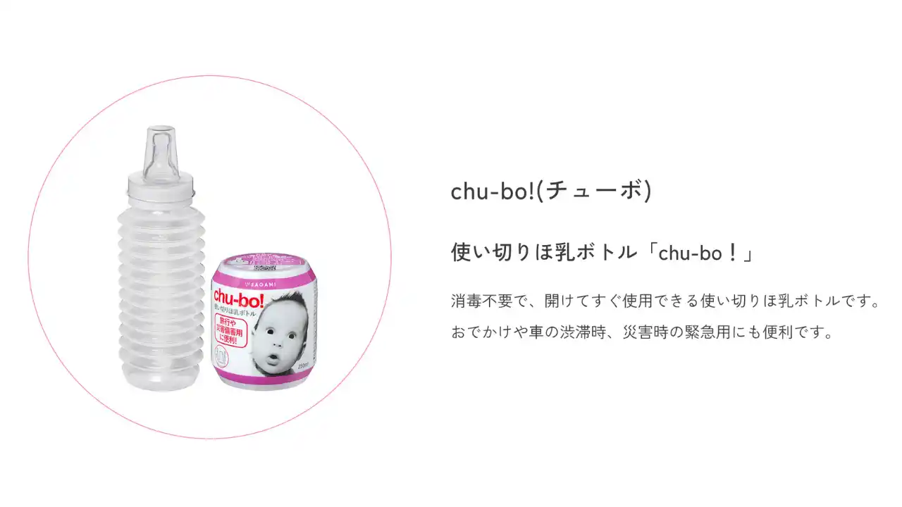 こうした背景の中で、消毒不要で開けてすぐに使える「チューボ」は、赤ちゃんとご家族、そして支援に携わる方々の負担を少しでも減らす手段として注目されています。 |