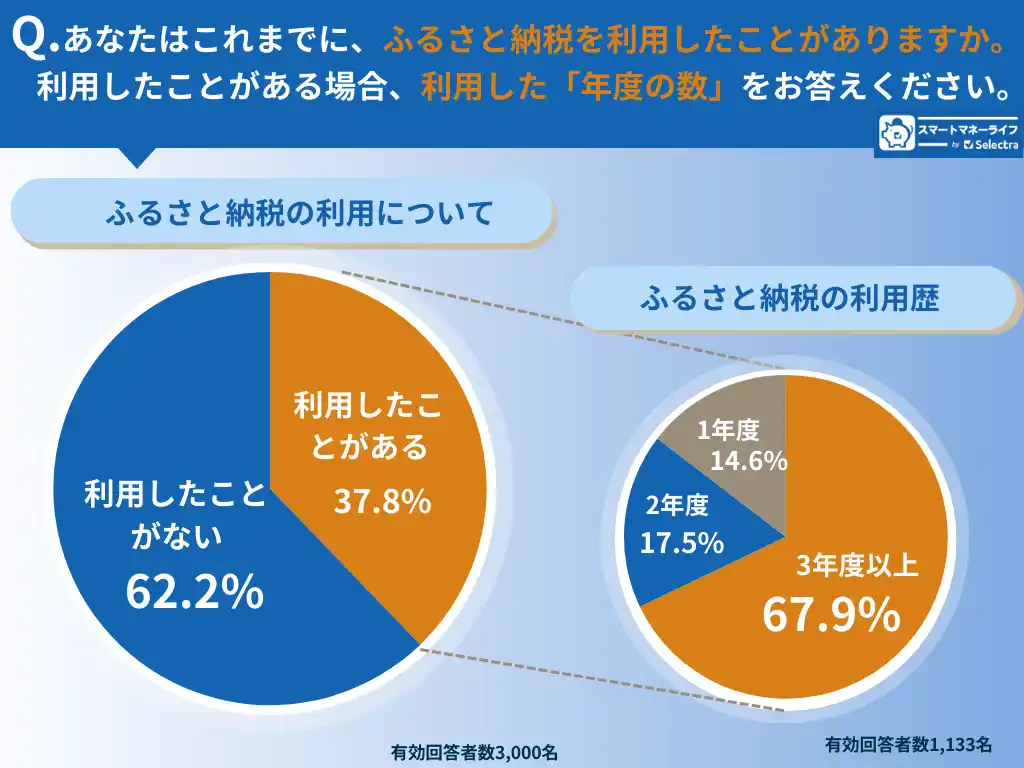 ふるさと納税:未経験者62.2%、経験者37.8%