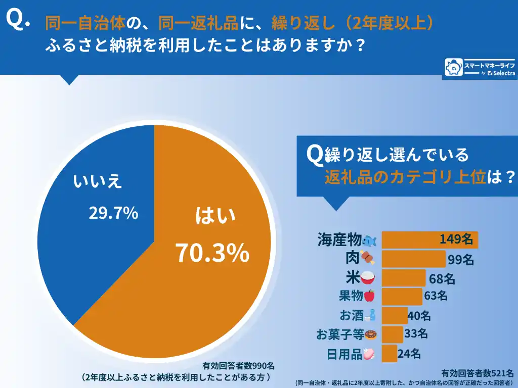同じ自治体の返礼品を選ぶ「リピーター」は7割も |