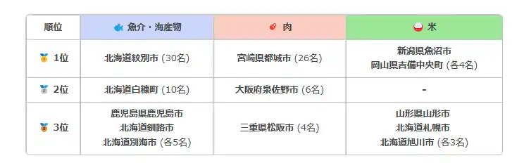 人気自治体ランキング:北海道紋別市(ホタテ)、宮崎県都城市(肉類)、大阪府泉佐野市(多彩な返礼品)がリピート自治体の上位にランクイン |