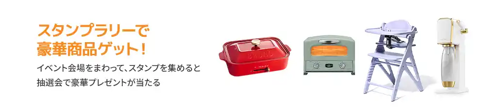 来場すると必ずもらえるプレゼントを用意しています。また、会場内のブースを回ったり、体験コンテンツに参加したりすると、豪華賞品があたる抽選会もあります。 |
