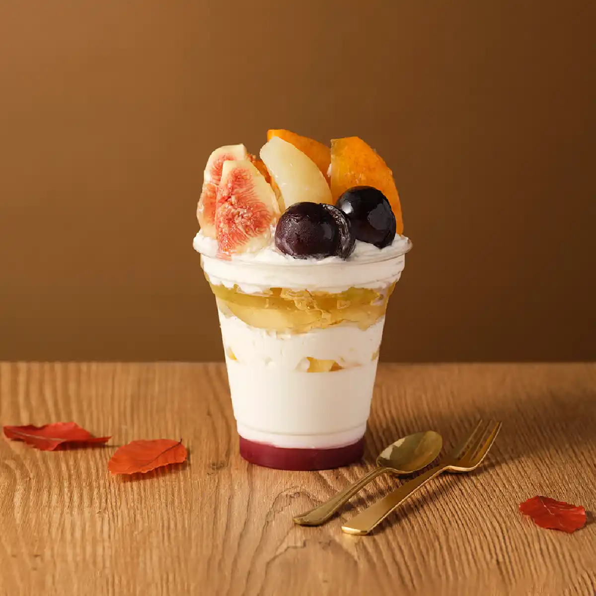 パンナコッタと葡萄ゼリーを柿、無花果、巨峰、洋梨で飾った秋満載のパフェ。東京ギフトパレット限定でお届けします。 |