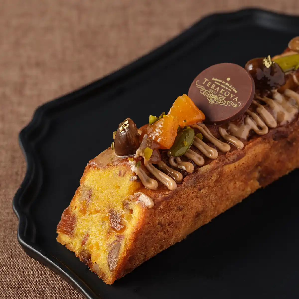 TERAKOYA 秋限定のプレミアムガトー。渋皮栗とかぼちゃに、キャラメリゼしたリンゴと香ばしいナッツを合わせて焼き上げました。カルヴァドスの華やかな香りが広がります。 |