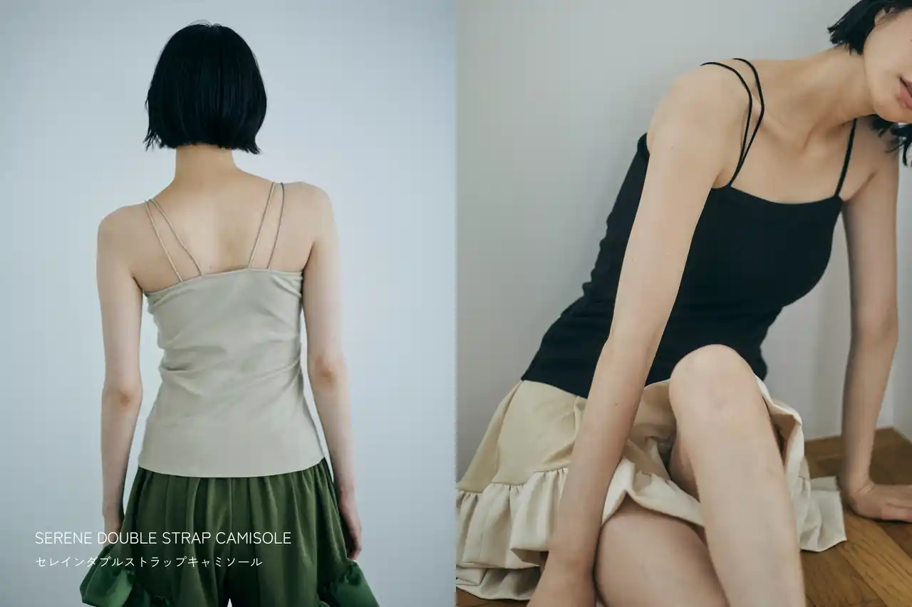 同時発売の『SERENE DOUBLE STRAP CAMISOLE』とのレイヤードはもちろん、 |