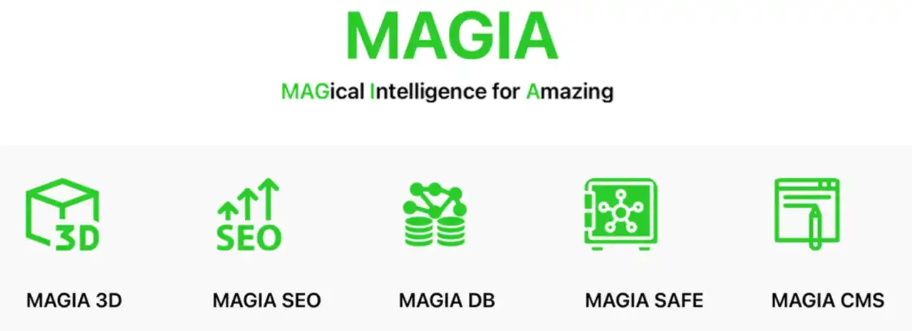| さらに、MAGIA SAFEがWeb空間を構造レベルで保護し、コピーや偽装を防ぐ高度セキュリティを提供します。 | |||||||||||||||