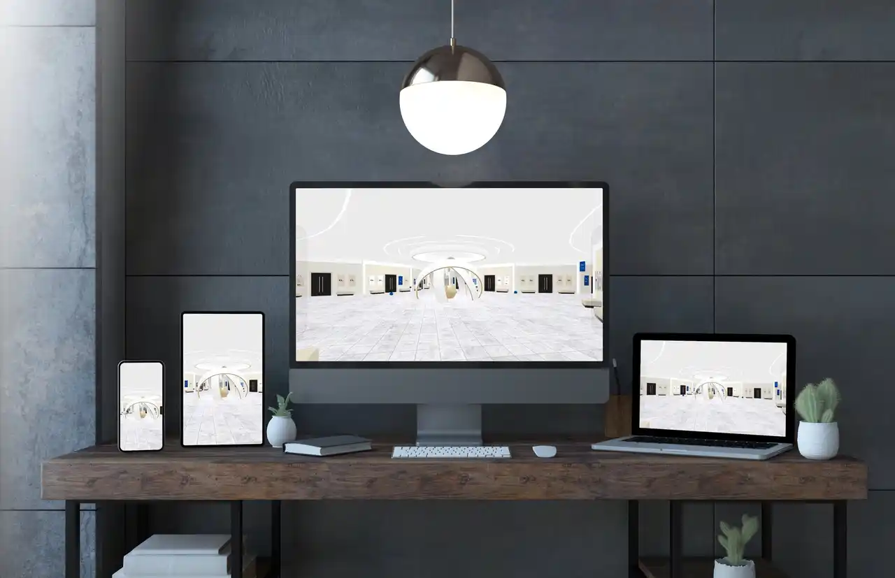 | 3D空間はアダプティブ設計であるため、あらゆるディスプレイの画面サイズに対応しており、縦・横表示を滑らかに切り替え、画面内容も瞬時に最適化します。ブラウザベースであるため、追加のソフトウェアのダウンロードは必要ありません。また、ハードウェアの新規導入も不要で、既存環境に組み込むだけで直感的かつ没入感の高い情報体験を実現できます。 | |||||||||||||||