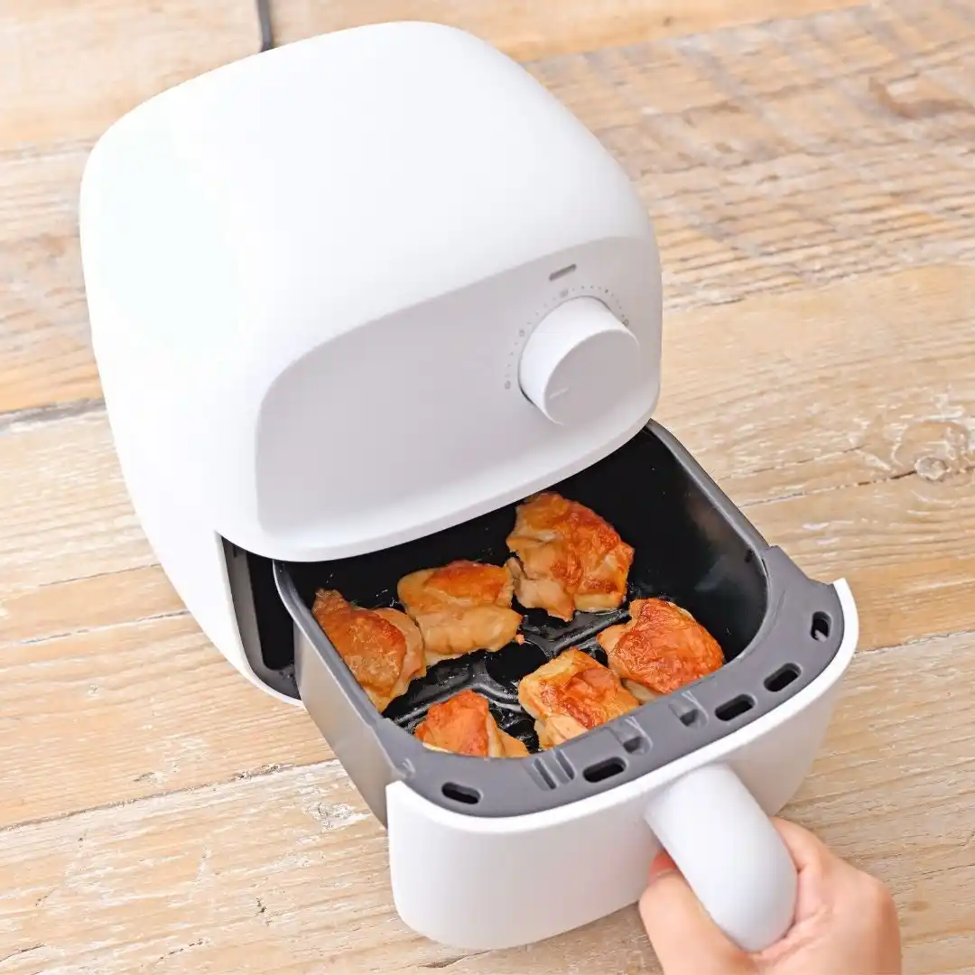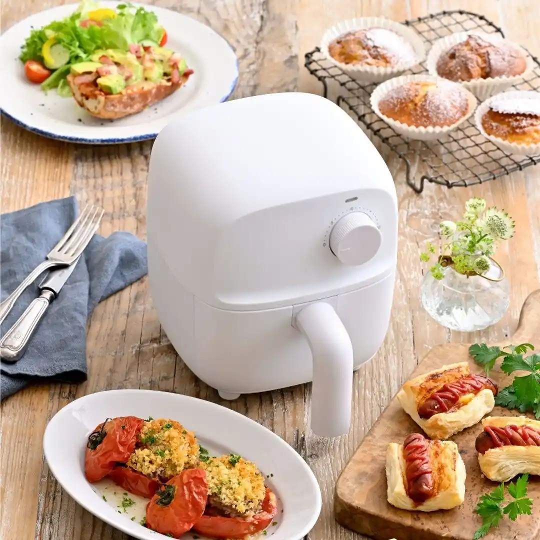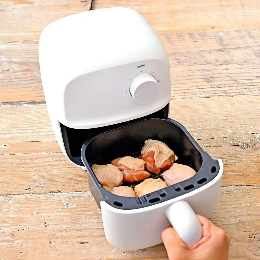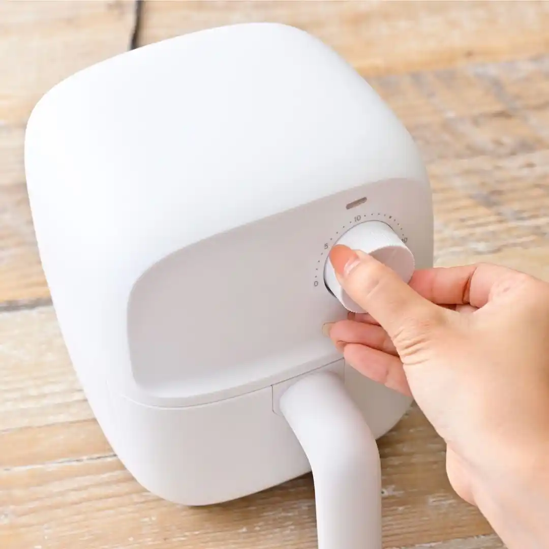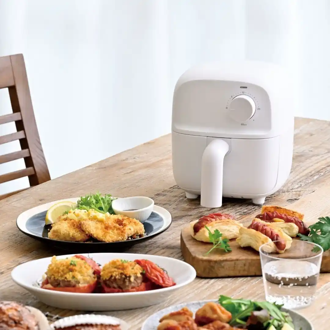 『ミニフライオーブン Piku Pot (ピクポット)』は、高さ20×横幅17×奥行き24cmのミニマル設計で、混雑しがちなキッチンに置きやすいエアフライヤーです。お弁当のおかず作りや1人分調理など、ちょっと使いにぴったりのサイズです。 |