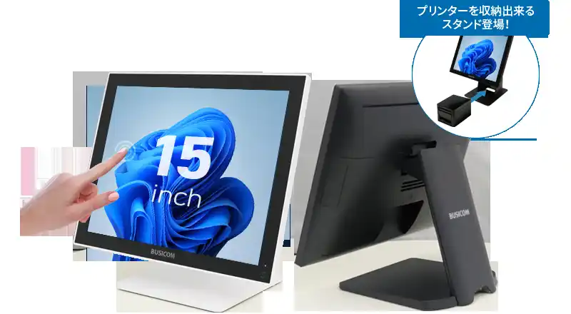 優れたタッチディスプレイに加え、背面までデザインにこだわった省スペース設計で、店舗など設置場所の清潔感を損なわずに設置できます。 |