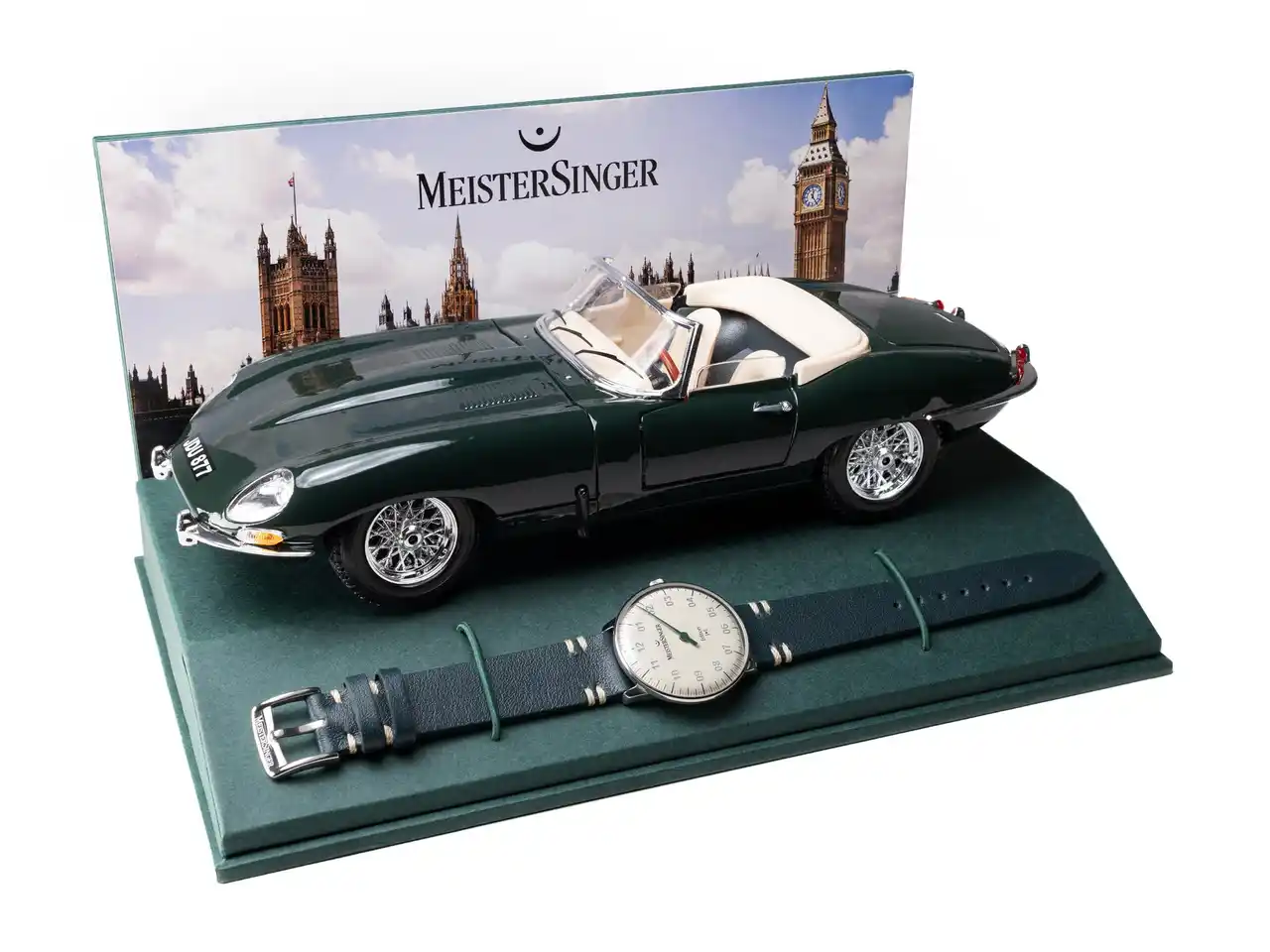 ドイツ発の機械式腕時計ブランド「MeisterSinger(マイスタージンガー)」は、伝説のクラシックカー“ジャガーEタイプ”をオマージュした限定モデル「Edition Neo J.E」を発表。ジャガーEタイプの1:18スケールモデルカーが付属する特別パッケージを、全国発売に先駆けて『阪急メンズ東京 Fortune Time(東京都有楽町)』および新店舗『NEXT BRIDGE by Fortune Time(大阪市中央区)』の2店舗にて、2025年8月29日(金)より3か月間限定で先行販売いたします。 |