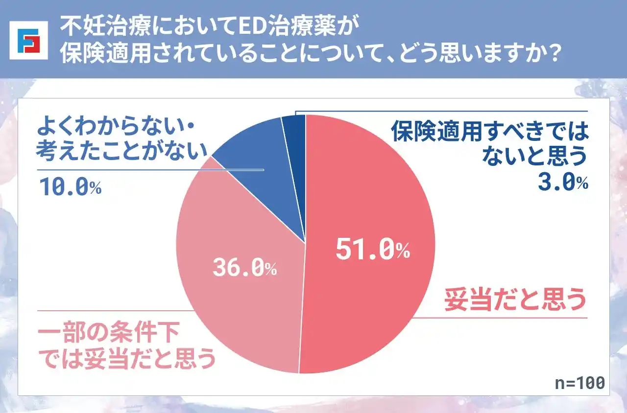 また、2022年からは不妊治療におけるED治療薬(バイアグラ、シアリス)の保険適用が一部認められたものの、制度の認知度や利用実態については十分に把握されていないのが現状です。 |