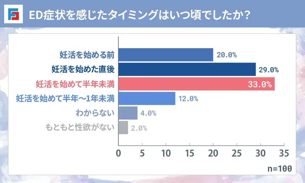 妊活中にED症状を感じたタイミングは「半年未満」が最多 |
