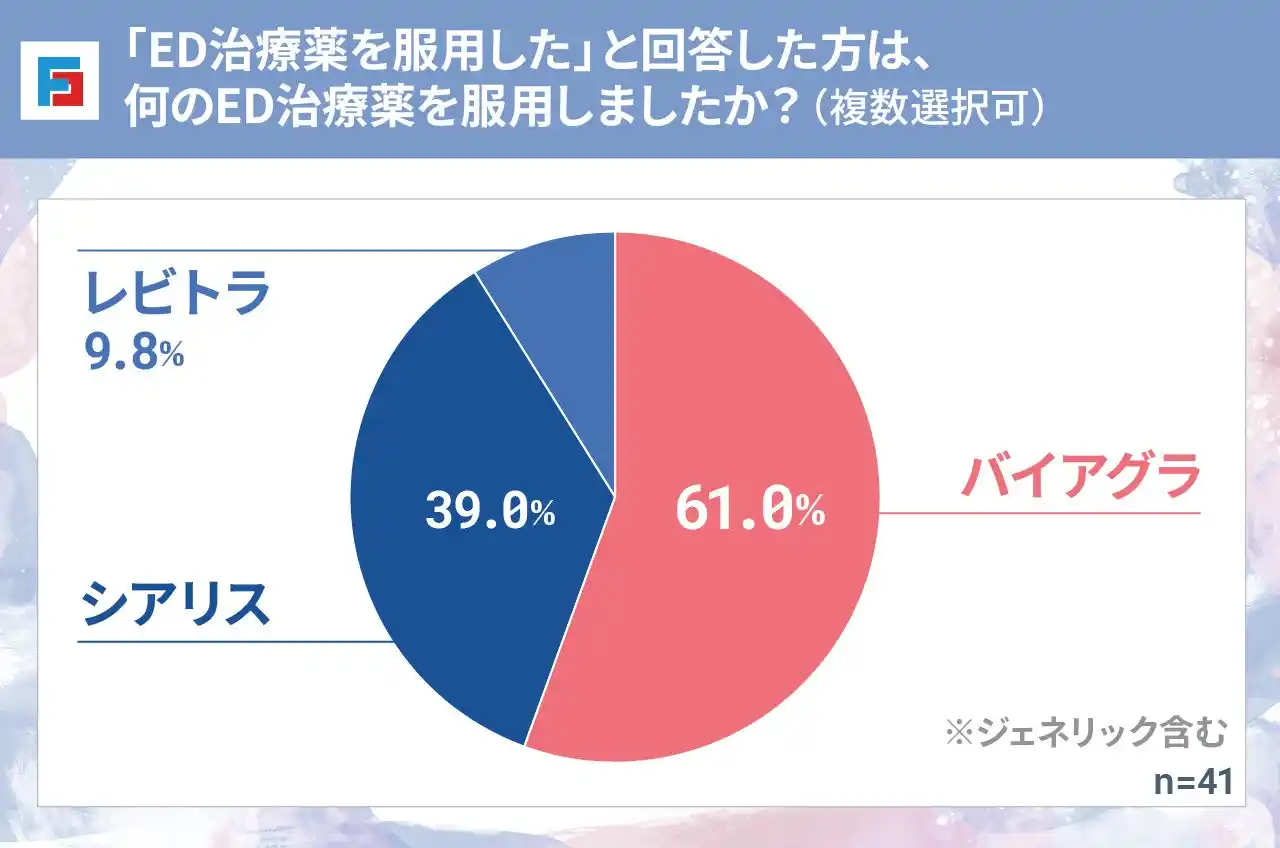 ED治療薬を服用した人の中で、使用された薬は「バイアグラ」が最多となりました。 |