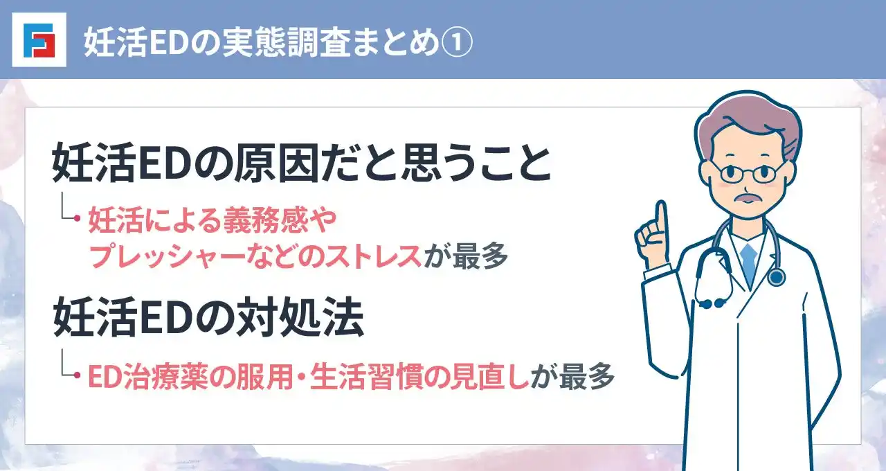 妊活EDの実態と、その背景にある心情や行動について明らかにしました。 |