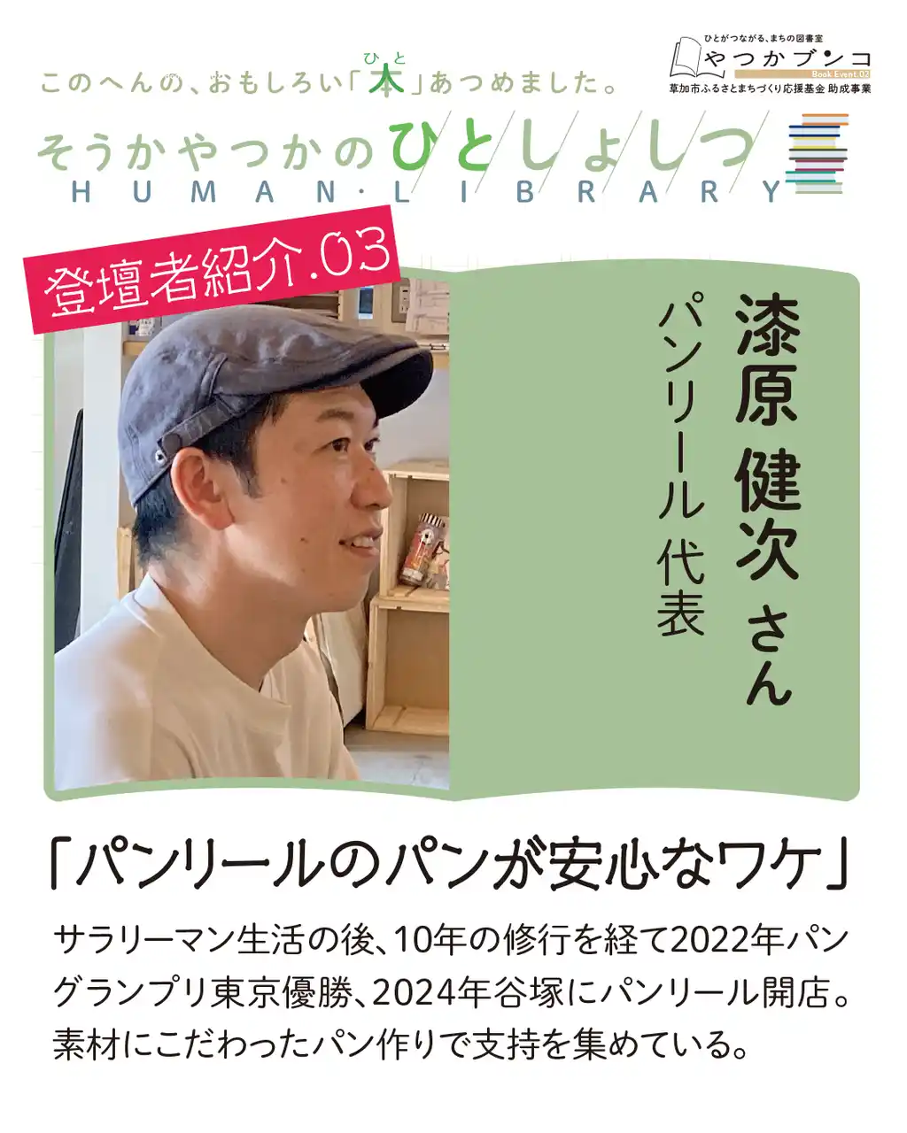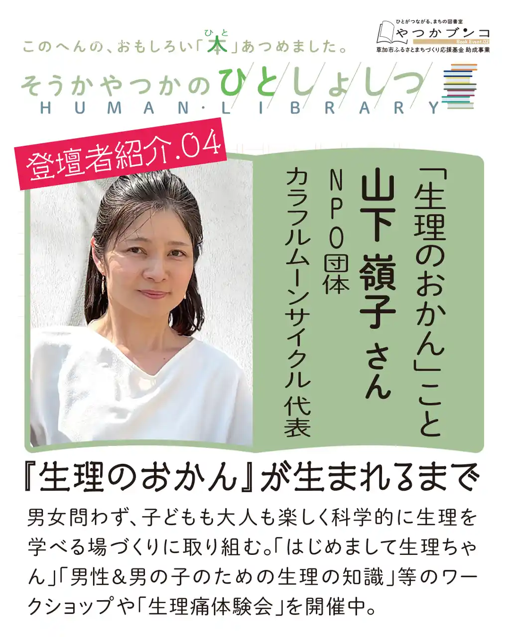 | 今回は、草加市内で様々な活動やこだわりを持ったお仕事をする”本”が4名集まりました! | |||||||||||||