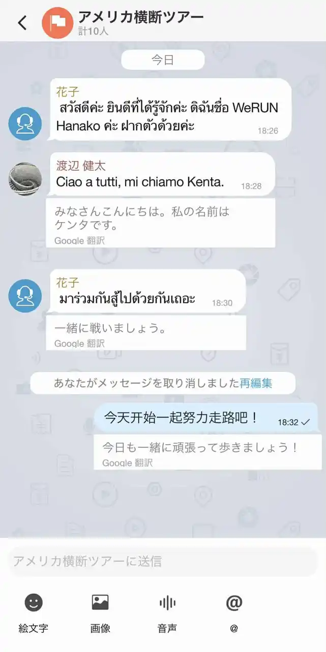 「WeRUN」は、ウォーキングやランニングイベントを通じて健康増進や社内活性化を図る企業向けスマートフォンアプリです。これまでも多くの企業に導入され、部門対抗戦やチームイベントなどで活用されてきました。その中でユーザーから「チームメンバーだけで交流できる場が欲しい」「言葉の壁を超えて盛り上がりたい」といった声を受け、国内アプリとして初めて世界の主要な言語に対応した翻訳機能付きのグループチャットを実現しました。 |