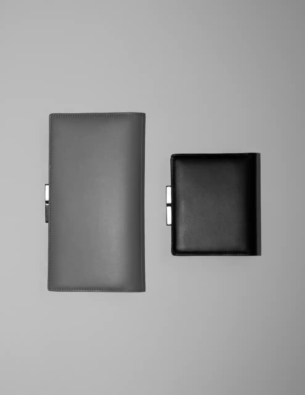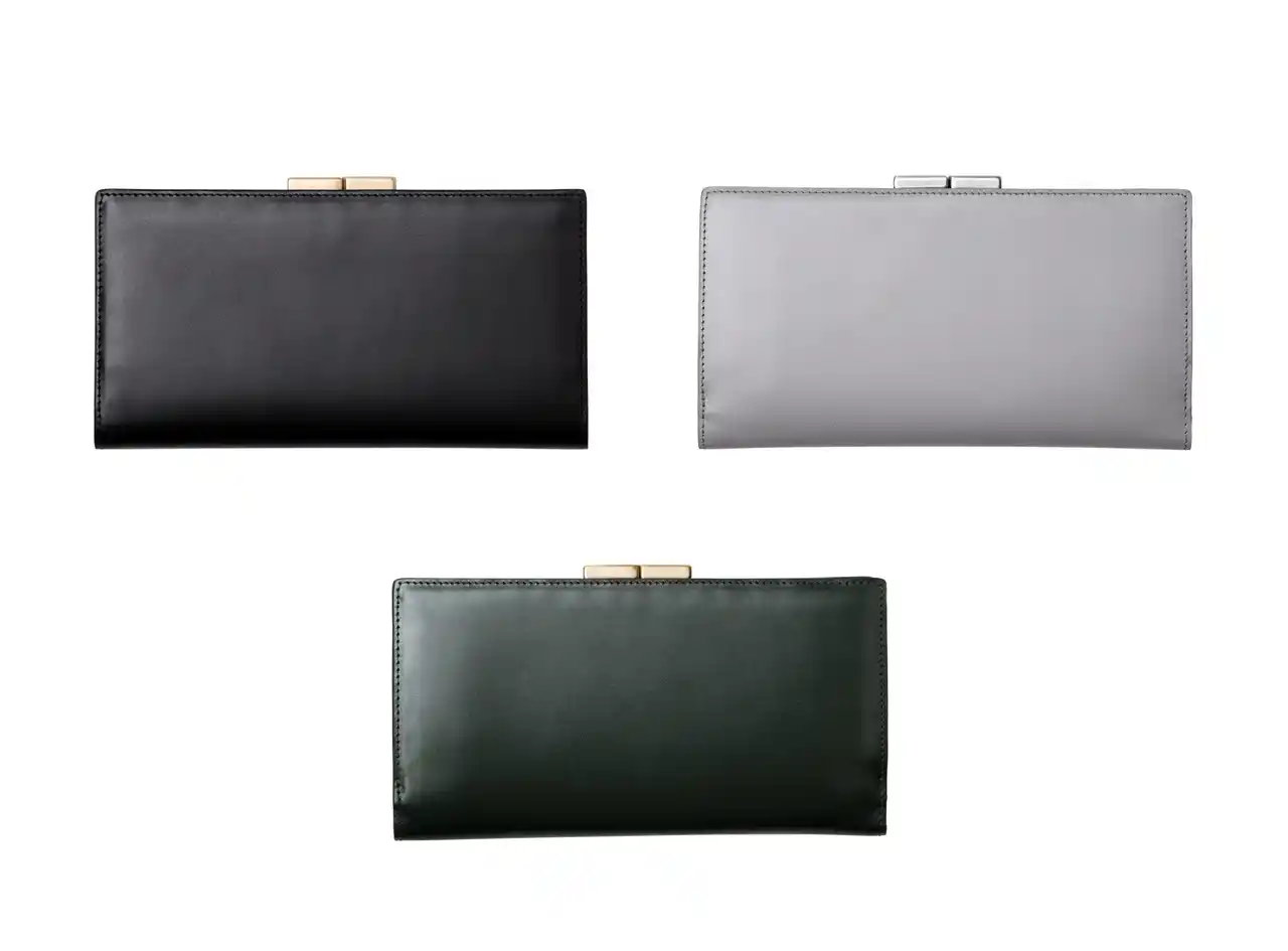 上質な「イタリアンボックスカーフ」で仕立てた、高級感のある長財布と二折財布です。あえて装飾などを施さず、素材が持つ魅力を生かしたデザインに。控えめな輝きを放つ口金が、アイテム全体をすっきりとまとめるアクセントとなっています。 |