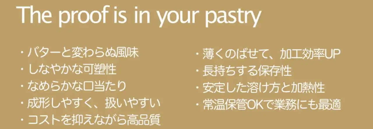 バターの芳醇な香りとコクを持ちながら、作業性・保存性・コスト効率を兼ね備えた |
