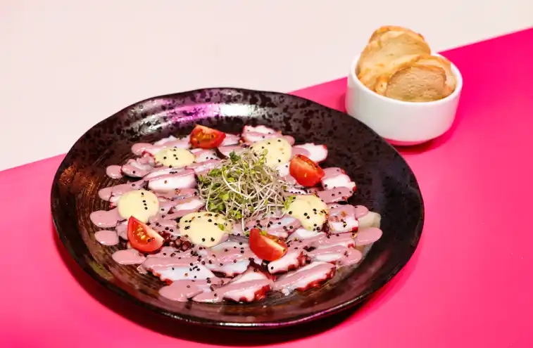 日本とペルー、二つの文化が融合して生まれた代表的なニッケイ料理です。タコを薄く切る工程には日本の刺身の技法が取り入れられており、そこにペルー南部タクナ地方原産の「ボティハオリーブ」が豊かな風味を添えます。冷製でサーブされるのが特徴で、アボカドやクラッカーを添えるのが定番のスタイルです。 |