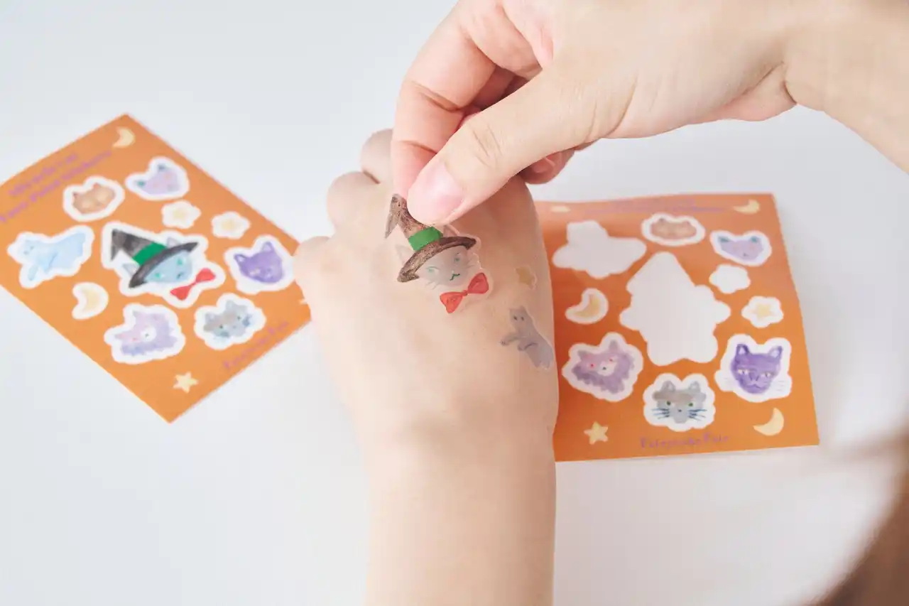 さらに、ハロウィンをもっと楽しめる「フェイスシール」とのセットも登場!前田ひさえさんの可愛いミラクルキャットたちを手軽に顔や肌に貼れるデコレーションシールです。お子さまのハロウィン仮装やイベント時にもおすすめ。ペイントよりも気軽で、剥がすのも簡単!ハロウィンシーズンにぴったりの遊び心たっぷりのアイテムです。 |