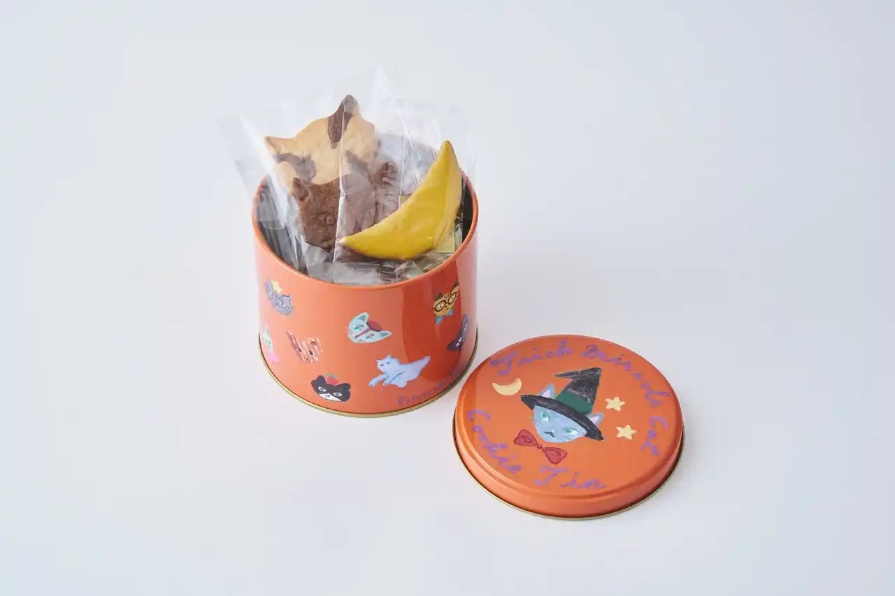 カップケーキとビスケットの店「フェアリーケーキフェア」は、2025年9月1日(月)より、ハロウィンシーズン限定のネコクッキー缶『Trick Miracle Cat Cookie Tin(“神様のいたずら”トリックネコクッキー缶)』を新発売いたします。 |