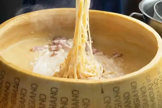 「パルミジャーノ・レジャーノで仕上げるカルボナーラ |
