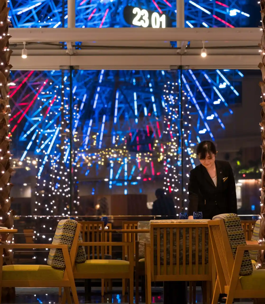 夜景に包まれ開放感のある「カフェトスカ」 |
