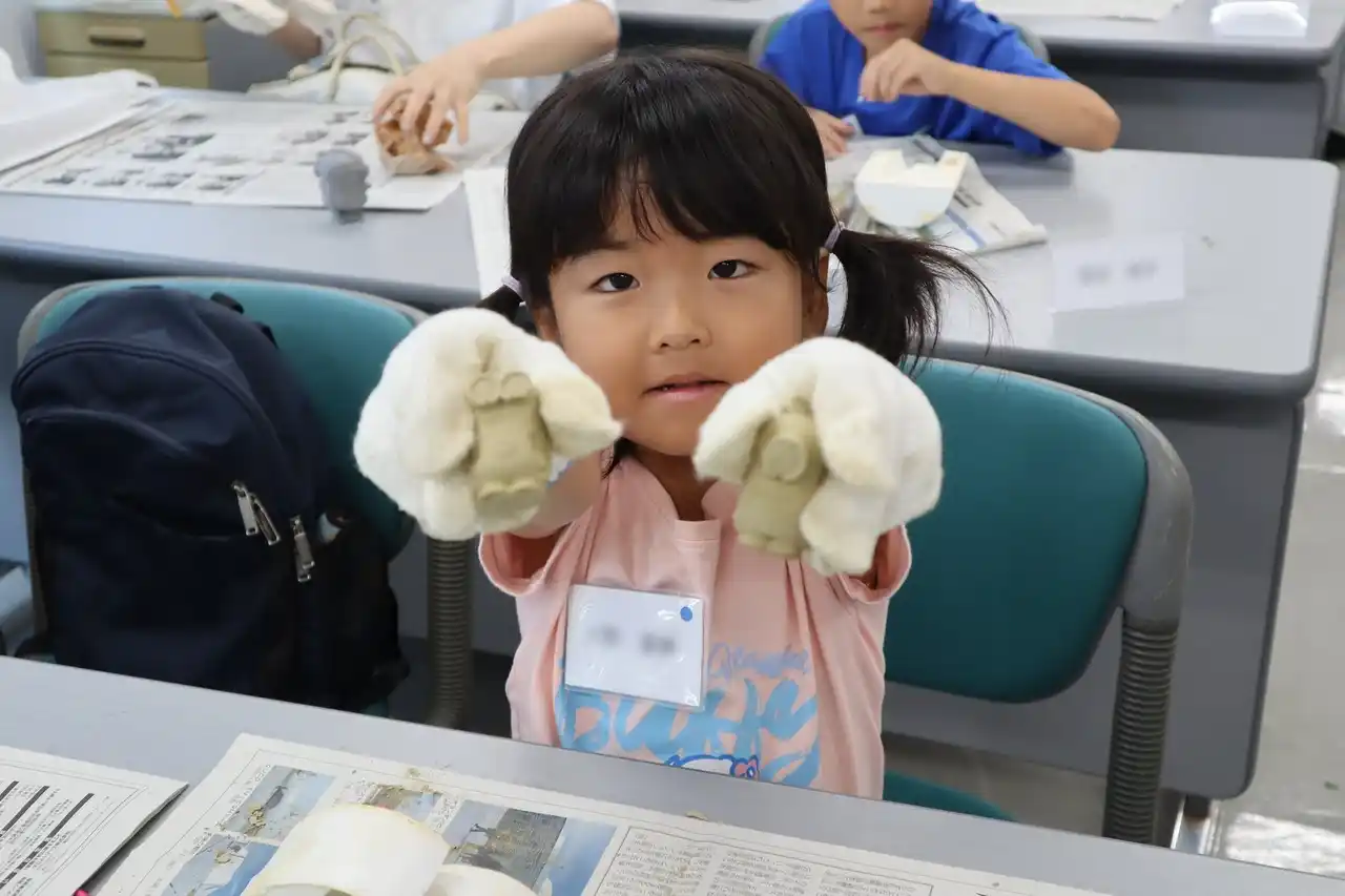 | 続いて例年子どもたちに大好評の人形つくりを体験。各自で手際よく練混ぜたコンクリートを型に流してできあがった人形を見て、子どもたちから歓声が上がりました。 | |||||||||