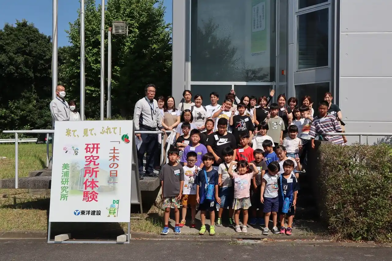 東洋建設株式会社(本社:東京都千代田区 代表取締役 会長執行役員CEO:吉田真也)は、2025年 8月5日、茨城県の美浦村生涯学習課と共同で、小学生向けの体験学習イベント「ものづくりの最新技術を体験しよう!」を当社総合技術研究所 美浦研究所で開催しました。本イベントは、「土木の日」関連行事の一環として、公益社団法人土木学会関東支部の後援のもと、今年で21回目の開催となります。当日は美浦村の小学生と保護者を含む35名の参加があり、賑やかな開催となりました。 |