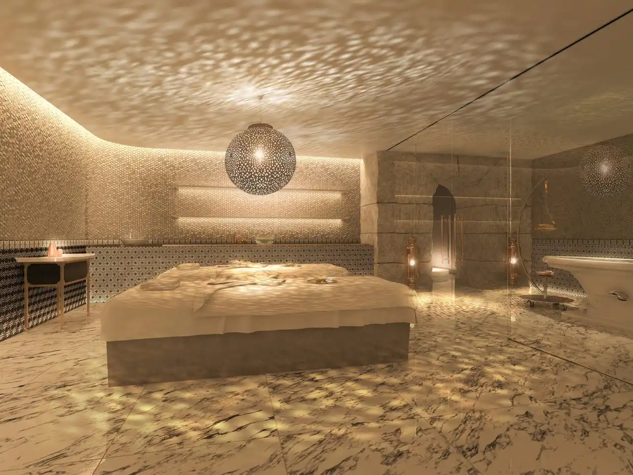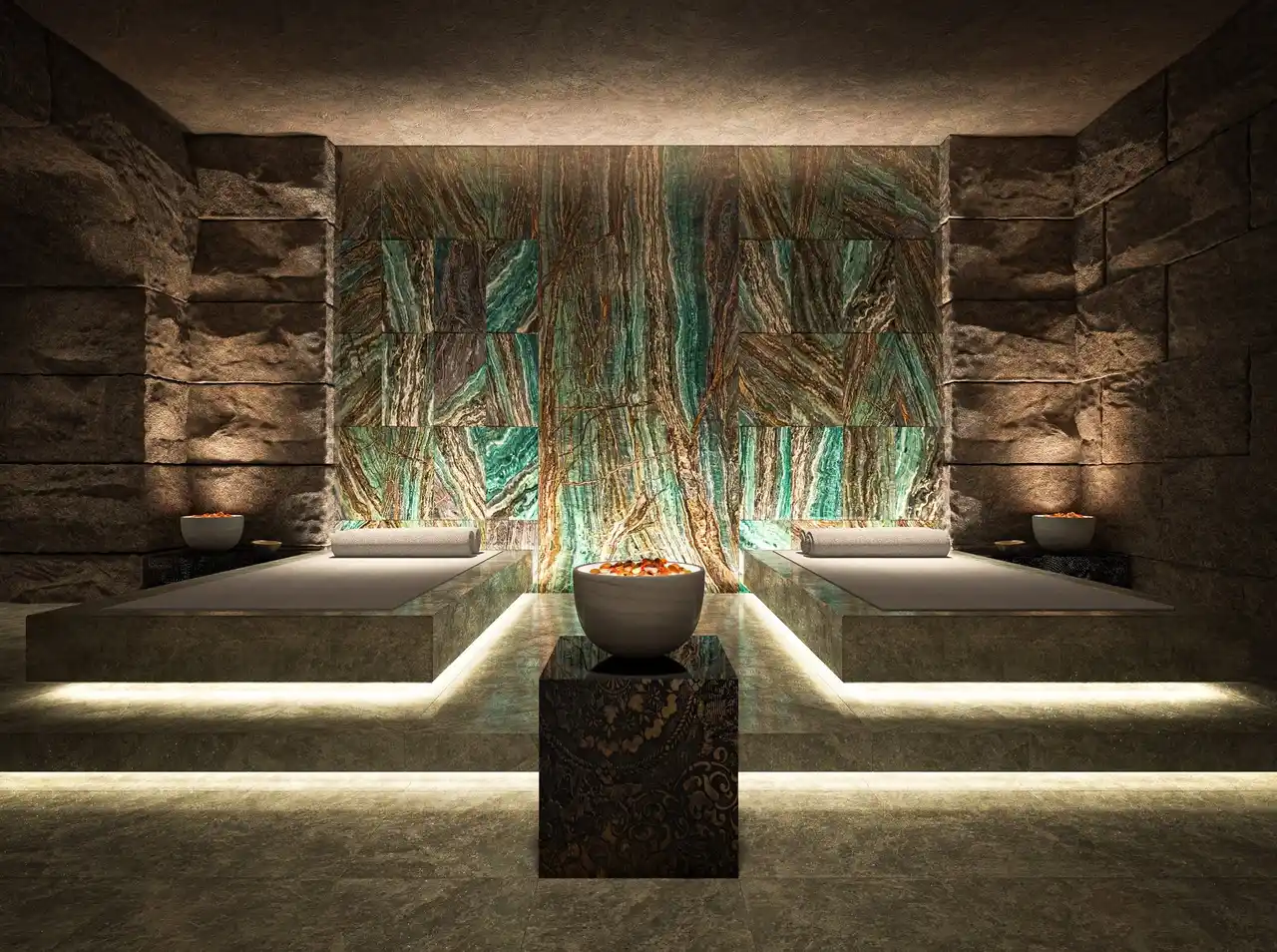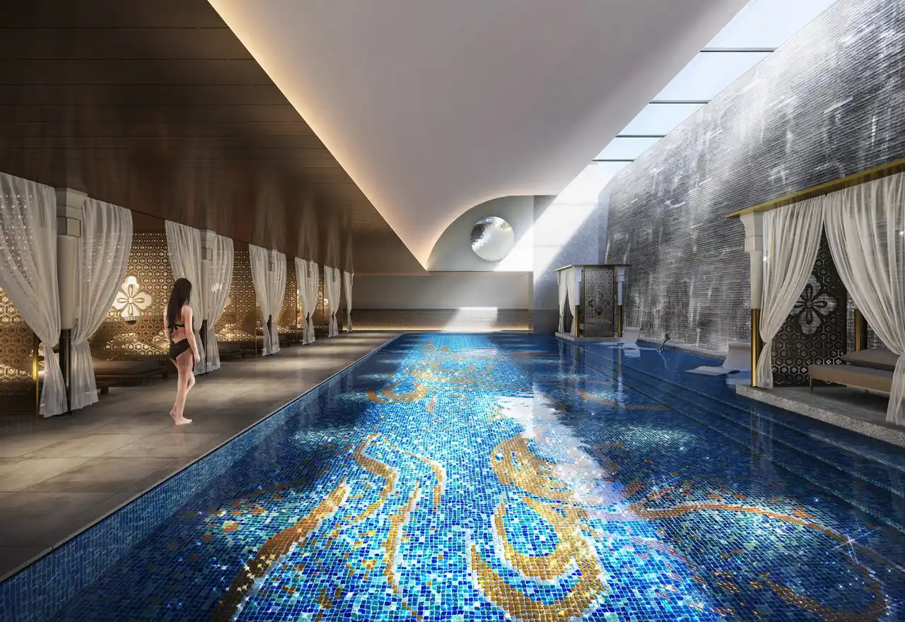 空間に包まれます。「The Art of Wellness」をコンセプトに、最新鋭の機器を取り揃えたフィットネスジム、当ホテルの地底から湧く天然温泉などの温浴施設や美しいモザイクタイルが印象的なプール、さらに異国情緒漂うラグジュアリーなトリートメント施設を完備し、真の寛ぎと健康をデザインします。メンバーシップの募集を予定しており、宿泊のお客様だけでなく、幅広いお客様にお愉しみいただけます。 |